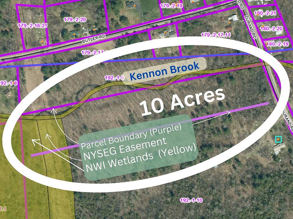 Eastern side of the parcel near the road is more wet, it elevates slightly into maple and oak hardwoods in the western portion.