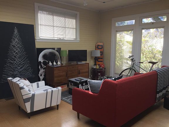 This is a super sweet fully renovated carriage house in a park like setting. Only a short walk to South Waterfront and downtown. The main floor is light filled with windows on all sides and an incredible 8 X 12 ft skylight in the center. There are hardwood floors throughout, a large private patio, private off street parking, air conditioning and an in unit washer/Dryer. It?s located just a few blocks from the OHSU tram and one block from a bus line. We pay for water, garbage and best of all, maintain the park like setting. Owner pays water, sewer, garbage and landscape maintenance. Tenant pays electricity and gas.