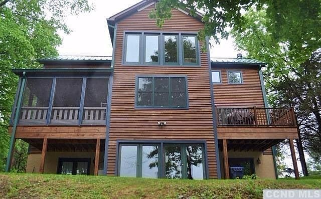 Stunning LAKEFRONT contemporary - sited majestically & designed to bring nature into your living space. Oversized custom windows, soaring ceilings & bamboo flooring throughout. Finished lower level has 2 large BRs each w/ french doors open to slate patio. Fantastic screened porch overlooks the lake. Entertain friends on the deck or stroll to the private beach for some waterside fun. Golf, boat, fish & swim all in your backyard. Perfect location 5 minutes to Red Hook, 8 minutes to Rhinebeck and 5 minutes to the TSP.