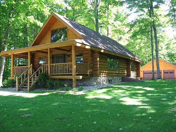 At the end of a country-lined drive you will find a beautifully handcrafted, full-scribe, Swedish cope log home perfectly situated on a peaceful hilltop of sprawling 40 acres. This three bedroom one and a half bath home is nestled in an idyllic private forest setting with a level of privacy and relaxation that can't be beat. Perfect setting for family and friend gatherings and a retreat for both the outdoor and indoor enthusiasts alike! Three car heated garage in addition to a finished and heated workshop.