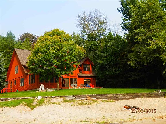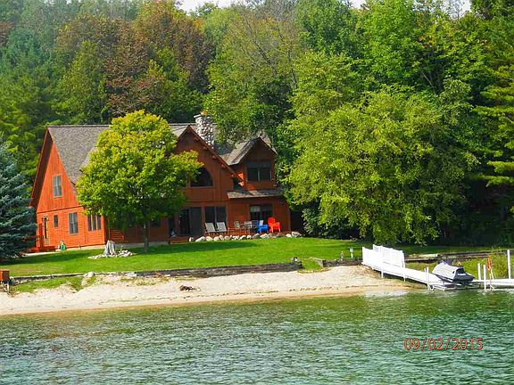 Stunning Town and Country Cedar home located on the South Arm of Lake Charlevoix. 4 Bedrooms, 2 1/2 baths with a open floor plan showcasing a floor to ceiling field stone fireplace. A three season rooms offers relaxation on a rainy day. Log interior with views from every room. A quiet location with beautiful sandy shores. East facing direction allows for long days in the in sun and relaxing evenings on the deck. Centrally located between East Jordan and Charlevoix.