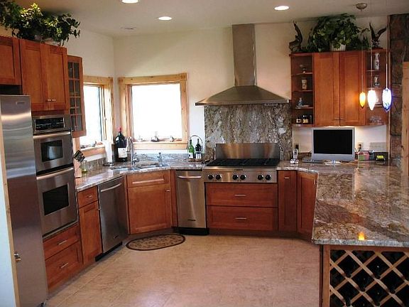 Enjoy the stunning beauty of this mountain home inside and out. Start with the exterior custom wood carved door, continuing through the entry tiled floor, gorgeous views from the great room. Gourmet kitchen for entertaining including 6 burner stove and walk in pantry, open to dining area. Main floor master suite with separate tub and shower, granite counters & vessel sinks. Outdoor has panoramic views while enjoying grilling on the patio and staying warm by the outdoor fireplace