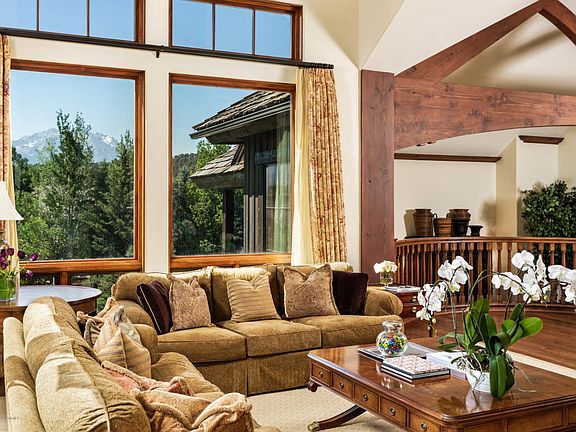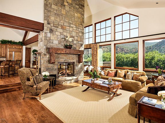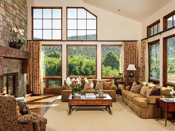 Discover all Aspen Glen has to offer. Golf, tennis, fly fishing and more.This well appointed mountain home located minutes from vibrant downtown Carbondale features 4 bedrooms, 5 bathrooms, high vaulted ceilings, exposed beams, hardwood floors, generous bedrooms and is conveniently perched above the Roaring Fork River.The homes open floor plan flows seamlessly with both indoor and outdoor entertaining space, a wood burning fireplace, ample garage space, making it the perfect Colorado home.