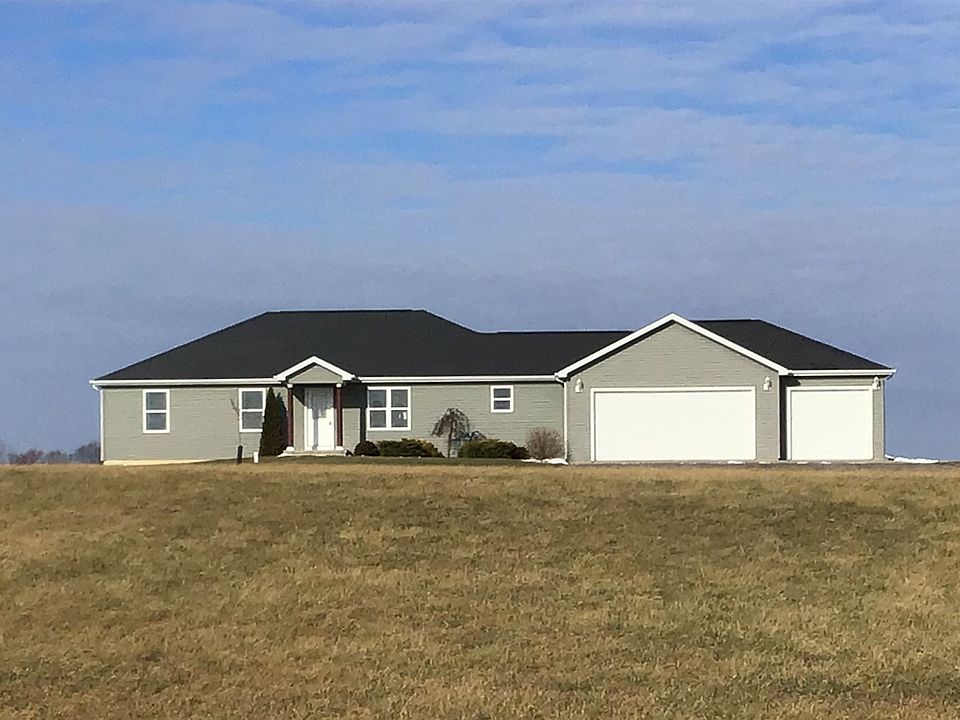 Contingent - Accepting back up offers. A home you have to see! This beautiful 6 year old ranch home with a 3 car attached garage situated on almost 7 acres of land giving you plenty of room to add the outbuilding of your dreams. The moment you walk in the door the Hickory floors throughout the hallways, dining room and spacious kitchen invite you in. The kitchen is full of maple cabinetry & granite countertops along with the newer appliances. This 3 BR, 2 BA home features a his & her's walk in closet for the MBR. Den could be a possible 4th BR if you choose. A great sized laundry room furnished with washer, dryer and utility sink off the 3 car attached garage. Downstairs is a spacious poured concrete basement with 10" thick walls that could be finished to give you a total of almost 4000 square feet of living space! Pool table stays to start out your recreational room. Heated and cooled with geothermal means only 1 utility bill and an exemption on your property taxes. The outside of the property features a 14x14 concrete patio that has been constructed with a footing so you can build a great structure for outdoor entertainment, etc. Approximately 5.5 acres is planted with hay, cash rented to a farmer willing to continue.
