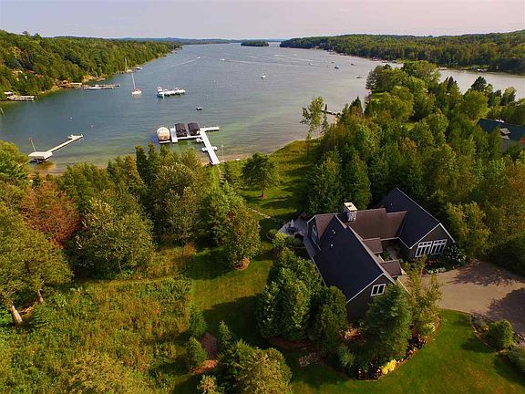 There's no better view on the South Arm of Lake Charlevoix than this. From the calm, deep bay - perfect for large boats - look all the way down the Arm, taking in Holy Island with its iconic bridge, and the deep woods flanking each side of this gorgeous body of water. This 215+ ft of frontage includes a separate buildable lot, or purchase the 3rd lot (total of 330') and have two buildable lots. And the perfect house. Four bedrooms, 3 baths; comfortable, light-filled; simply, quietly and completely high-end.