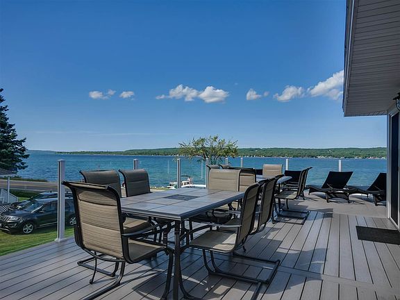 Boyne City - Lake Charlevoix proper! Families and vacationers this is the perfect place. A Must see 7 bed, 6 bath Stunner with great frontage and a new dock on Lake Charlevoix. The sellers renovated this home from top to bottom no touches were missed from the spectacular added second kitchen and game room on the main floor across from the beach, additional bedroom and bath, new flooring throughout, remodeled main kitchen, 2 fireplaces, the home sleeps and eats 22, expanded deck, $40k city sewer, grand fire pit, furniture, beds, linens (everything you see is included less a few personal items in the garages), expanded driveway for easy parking, and so much more. The deck includes two natural gas outlets for the grill. This home will surely surprise you with all the attention to every last detail. Guests are so pleased and come back year after year. Ask agent for rental history. And, if you choose it will make a great family retreat or permanent residence; rentals can be cancelled with short notice. This property also contains an oversized garage, a large carport for a boat or toys and a 24x30 barn with an extra 15x30 storage loft. Just outside the city limits yet you can easily walk or ride your bicycle to downtown Boyne City! Call for your personal tour.