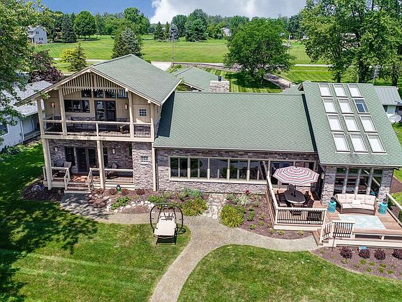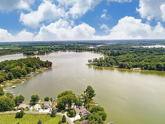 Northshore Dallas Lake is Destination Let the Good Times Roll! A distinctive approach to this beautiful home sets it apart... the custom stone wall topped with a pair of statuesque herons and winding concrete driveway bring you to the entry of this dreamy 2900 sq. ft. lake house. Over the last couple years, the Sellers have taken this 1998 Pete's Construction built home and transformed it into the HGTV worthy beauty you will see today. The main floor open design is set off with the south facing wall of windows, stone fireplace, an amazing maple kitchen with granite countertops, laundry with full bath, Chip and Joanna style mudroom, hard surface flooring, soaring ceilings, LOVELY entry way, 3 bedrooms, another full bath and of course the party room with floor to ceiling glass!! Move upstairs to the second floor which is THE Master Suite with a private deck, an AMAZING bath and huge walk-in closet with all the right built-ins. The home has a 2 Car attached garage. Let's go out front... The earth tone facade on the exterior of the house is stone/wood/vinyl and the lakeside deck, is of course a favorite gathering spot. The lot is level with 100 feet of shoreline and the view is of the jewel of LaGrange County, Dallas Lake Park. Out back there is a 32' x 40' detached building with 2 car garage and bunkroom for the overflow weekend guests AND parking galore!