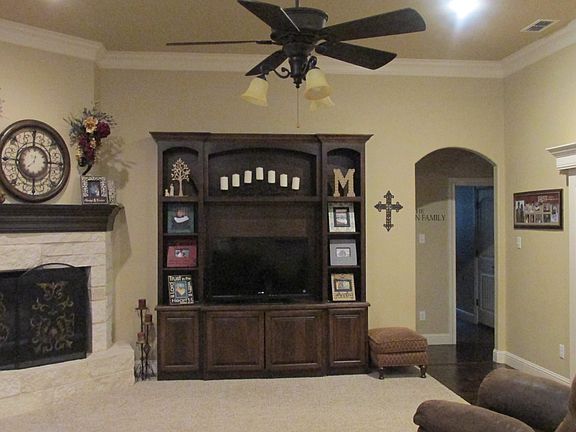 This home is 2644 sq foot and was built in 2014. It has 4 bedrooms 2.5 baths. Two of the bedrooms have a Jack and Jill bathroom. All bedrooms large have walk in closets that have custom shelving. The cabinets throughout the entire home are custom designed with soft close hinges as well as having granite counter tops. The master bath has his and her vanities, a walk in shower and large soaking tub. Flooring throughout the home consists of beautiful hardwood and carpet. All the bathrooms and mudroom/laundry are stained concrete. There is an extra large back patio that is also has beautifully stained concrete. There are sprinkler systems in both the front and back yards as well as a stained privacy fence. It has 3 car garage and plenty of storage space in the attic as well. This home is located in the highly sought after Mountain Shadows Subdivision just minutes away from Wylie Intermediate School.