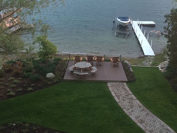 Three bedroom, 3.5 bath home on Lake Charlevoix has extensive professional landscaping, and a fabulous interior with granite counter tops throughout, stainless appliances, hardwood floors and two gas fireplaces. The lower level family room boasts a wet bar with full-sized refrigerator, as well as comfortable living area around a cozy fireplace, or walkout to the beach: perfect whatever the weather! There is a huge deck for fair-weather entertaining, enormous views and an additional lot for a carriage house.