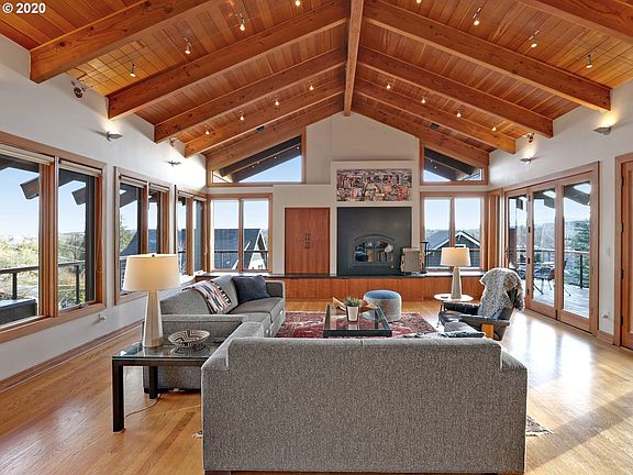 Custom NWContemporary blends industrial & crfstmn finishes overlooking views of Mt. St Helens & WillametteRiver. Architecturally designed: vaulted/open beamed ceilings+grand open foyer & walls of lrg picture windows. Open living/dining/kitchen for entertaining or head to covered wrap-around deck. 3,323 sqft floor plan includes 3bed(1 on main), 3 bath, den, laundry & storage. Lux features:Dacor 6 burngasrange, radiant floor heating & XtrodinairElite wood burn Fireplace. Desirable John's Landing! [Home Energy Score = 6. HES Report at https://rpt.greenbuildingregistry.com/hes/OR10119616]