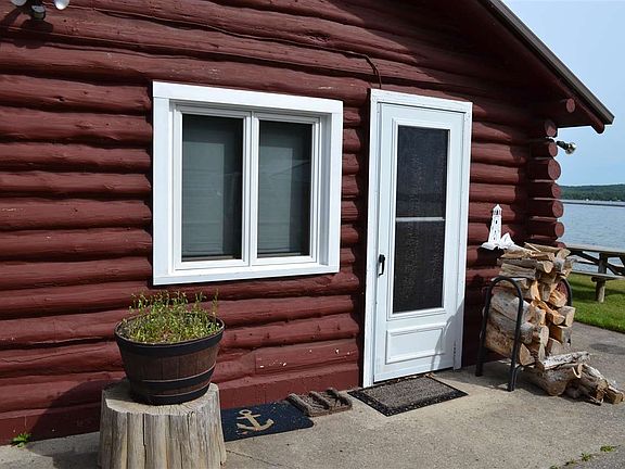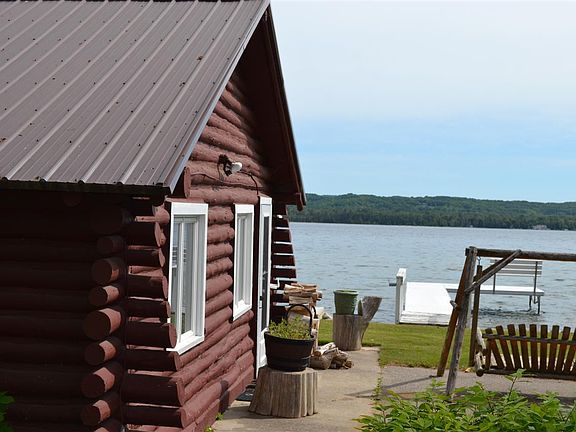 Two bedroom lakeside log cabin on 70' of frontage. A perfect summer retreat right on the beautiful Lake Charlevoix. A fully functional and quite charming kitchen graces the entrance of the home, followed by a dining room and cozy living room. The porch swing on the patio is the ideal place to sip coffee in the mornings while watching the sun peak above the trees. Sit aside the wood burning fireplace on chilly evenings or stay outdoors to roast marshmallows while reflecting on the day as the sunset begins to reflect on the lake. The dock is included for the perfect boat-in-boat-out day. An inviting cabin ready for a wonderful four seasons!!!
