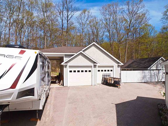 On the rise of a treed corner lot, this four bedroom home is the very Jones everyone is trying to keep up with. Built with extra attention to detail, the house has crown molding, a natural field stone fireplace, custom trim covering the hot water baseboard heat, and 9' ceilings throughout. The sumptuous master suite is perfect for a private escape and enjoy a three-season screened porch for morning coffee or entertaining friends. Other features include a full, finished walkout lower level with a bar and media room, a whole house generator, dog-washing station, natural gas, underground utilities, a formal dining room and casual breakfast nook -- all this, and you haven't been outside yet. Storage abounds with the heated three car garage and a detached garage with a covered carport - designed for a large motor home, boat or 5th wheel. Attached garage has cupboards, sink with hot/cold water, Corian counter top and hook up for an extra washer. An additional building is a "dogominium" - a large kennel with outdoor and indoor areas; living areas, food storage and workspace but could be used for many other hobbies. Plenty of room for two-legged or four-legged family members to run, but pretty pathways and gardens to enjoy, too. Explore hunting, hiking, snowmobiling and cross country skiing on 200+ acres of DNR property on Walloon Lake a short distance from the home. Forest Trail mountain biking and groomed cross country trails are two miles from your doorstep. This amazing home is located in the Golden Triangle between Boyne City, Petoskey and Charlevoix - far enough away from town to count as country, but with a neighborly feel. Seller Motivated.