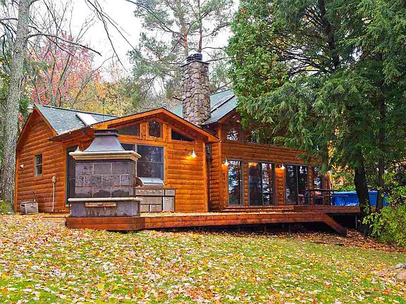 Lovely Log home on the sandy shores of Six Mile Lake. Home features an open floor plan, wood fireplace, cathedral ceilings and a main level master. Stunning kitchen with newer appliances. Stunning views from every room offers the feel of waterfront living. A large deck spills out from the living room with an out door wood burning fireplace. Enjoy three seasons on the lake in comfort..