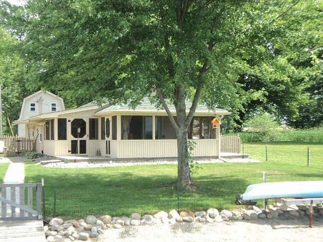 Storybook cottage on Story Lake! This little gem sits at the end of the lane so it has a rare private setting. The cottage has four parcels total-two lakefront lots (100' frontage) and two backlots totaling 0.65A with two detached buildings! Inside you will find a picture perfect cottage with bead board detail, handmade cabinets, and doors. The open floor plan maximizes the space so entertaining here will be easy. There is a comfortable feel in every room from the enclosed front porch to the two bedrooms and finally to the open living/dining/kitchen spaces. Spend chilly days nestled in front of the cast iron propane fireplace- which heats up the entire space very nicely. To summer evenings in front of the fire pit looking at the lake! Come and relax. The works been done here! UPDATES INCLUDE: windows, doors, siding, screened porch, shed, fire pit, decorative fence, roof on garage/part of house, septic leach area-pump-pump chamber, 4 inch well. There is also another septic system (inactive) on the vacant lakefront lot.