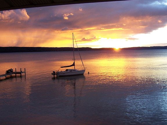 306' of sandy Lake Charlevoix frontage backed by 3.2 mostly wooded acres, on a quiet cove for easy sailing in and out. There is a beach house with a full bath and a screened-in porch as well as a storage building with 1/2 bath. Ready for weekending right now: glorious views and a supply of dry firewood for evenings around the campfire. Peaceful and private, insulated from M-66's traffic sounds, this quiet neighborhood is the ideal place to locate your family's dream house - now, and for generations to come.