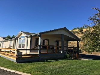 Extremely well kept 2001 manufactured home. Two bedrooms and an office which can easily be turned into a third bedroom. Two large bathrooms which have just been remodeled. Large open kitchen with island and large open living area. All the flooring has been replaced in December 2017 and new carpet in all bedrooms and office in January 2018. New beautiful tile in bathrooms and free-standing tub installed. Home has a certified wood burning stove as well as an entirely new high efficient heat pump system that was installed in September 2017. The home does have a 600 sqft attached double car garage with door openers. There is also a 30' x 40' shop behind the home. The shop has a full bathroom with separate water heater, wood stove, and the entire shop is sheet rocked. An abundant of receptacles in the shop both RV and welding. There is an 1100 sqft lean too attached to the shop with concreted wood shed. Also on the property is a large 30' x 50' open pole building which can be enclosed for RV storage. RV parking with water, electrical hook up, and sewer dump. Freshly sealed blacktop in front of home as well as new gravel around house and up the driveway. Nice fenced back yard with established trees. Exterior of the home was painted July 2016. Gorgeous view of entire valley with the feel of being out of town but the convenience of being close to town. Home is on city sewer but has a private well.