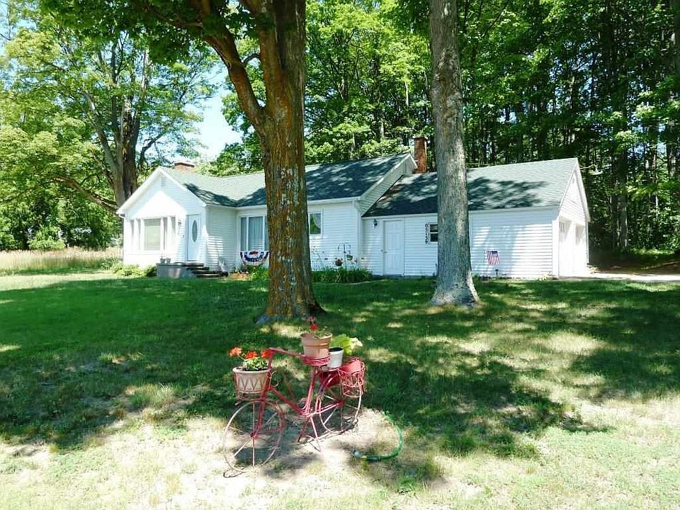 In the heart of charming, historic Horton Bay--next to the Horton Bay Store--2 bedroom home, with oak hardwood floors, dining room with a view, fireplace, two car attached garage and full basement. Two new bathrooms, updated kitchen and new appliances. SW-facing lot with seasonal view of Lake Charlevoix. Travel down the road to the sugar sand public swimming beach and boat dock/picnic area. Home boasts newer roof, gutters, range/oven, and refinished floors.