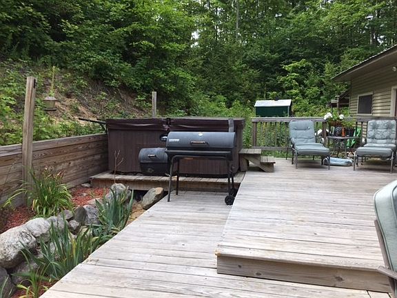 Very comfortable 3 bedroom,3 bath home w/walkout basement on a quiet country road surrounded by 10 acres. The main floor is light & bright, with laundry & a large kitchen/dining area that makes meal time great. The lower level has a family room, poss. 4th bedroom & more than adequate storage space. The home can be heated w/propane or outdoor wood fired boiler system. The 16 x 32 deck w/hot tub will allow for extra relaxation as you watch the abundant wildlife and decide to view or stew.
