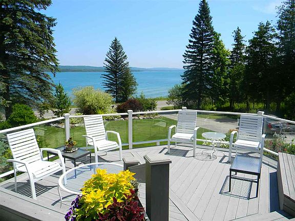 Teaming with charm and color, this beautifully landscaped property offers incredible views of Lake Charlevoix. A feeling of seclusion in an upscale neighborhood is the setting for this three bedroom three bath residence featuring 110' of lake frontage. Deep water allows for an excellent boating experience with a short dock regardless the lake levels. An ecclectic style with a modern flair, hardwood floors, high end kitchen and baths, decks are all well designed by the artist and current owner.