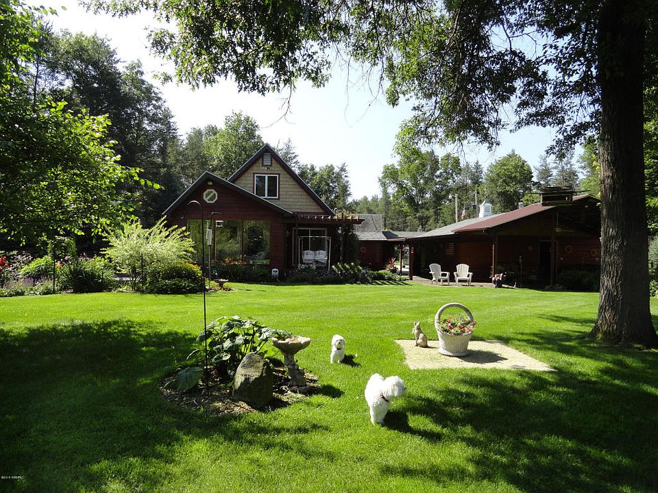 Superb Quality three bedroom, 2 bath home on 10+/- nicely wooded acres. Home features an open floor plan with custom kitchen cabinetry opening to a cedar walled living room with pellet stove insert on the fieldstone wall and exposed beams. Stainless kitchen appliances, granite island, second level sleeping loft and master bedroom offers a doorwall to stamped concrete patio. Glass patio room offers heat making it a true four season room that overlooks the stunning landscaping which continue s around the property. Partial basement is finished with a bath, bar and two family rooms. Extra deep attached 2 car garage and underground sprinkler system.32x24 garage has finished second level living quarters with garage offering electric and woodstove. 40x36 Pole Barn with 14 foot ceilings and door, cement floor, electric and storage loft. This barn has a 34x24 addition and a 16x16 addition. Property also has a 12x16 drive thru shed. Call Nicole Estes at 231-510-0376.