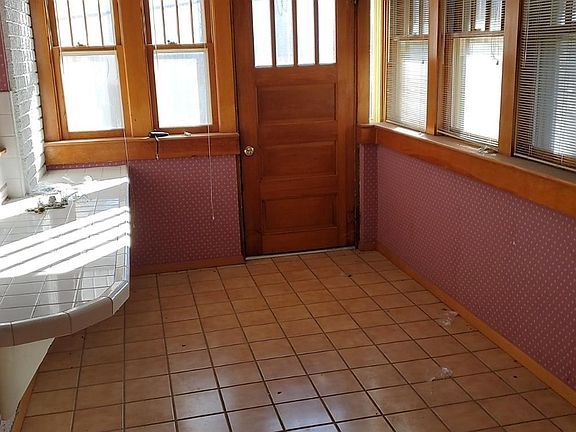 Craftsman style woodwork with built in desk and display cases. Large welcoming front porch has room for a swing and space for guests. Oak flooring under carpet, high ceilings, gas fireplace, boiler heat (boiler replaced in 2008) and window air units, parlor or office, lots of storage and closets, dishwasher, breakfast bar, partial finished basement, corner lot, with detached insulated 32x20 garage. Some repairs needed.