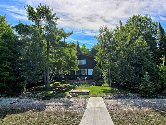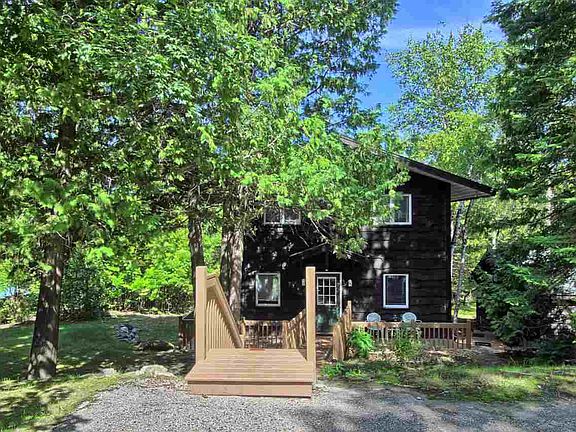 Just a few miles outside of Boyne City on 100' of frontage is a three bedroom cottage. The full-size spacious kitchen flows into the living area, where every seat is positioned for an exceptional view overlooking Lake Charlevoix. Wood beams adorn the ceilings, giving that true cottage feeling. Let the little ones play in the separate bunk house while dinner's on the grill. Enjoy the best of both worlds with sunrise and sunset views from the dock. The grassy lawn gently slopes from the deck down to the lake. This home is kid-friendly with a sandbox for tiny toes and a picnic table for lunchtime sandwiches. A short distance from Whiting park's public beach, hiking trails, and the historical Ironton Ferry making for easy access to neighboring towns and events. Upgrades include a brand new HVAC system and water filtration system. Your home-away-from-home or perfect year-round sanctuary.