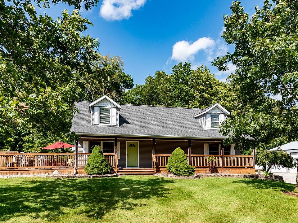This beautifully maintained country property sets on a peaceful 6.5 acres in DeKalb County. The 3127 square foot home offers three bedrooms, with a possible fourth bedroom in the basement, and four full bathrooms. The home's entrance invites you into a great room with vaulted ceilings, open staircase, and wood pellet/corn burning stove. The sunlit Brazilian cherry wood floors lead in to the kitchen where you will find custom oak cabinets, granite countertops, and a large pantry closet. Two bedrooms are located on the main level, including a master suite with walk-in closet, jetted tub, and separate stand-up-shower. When entering the home from the 2.5 car attached garage in the back of the home, owners will love a large mudroom and separate laundry area with utility sink. Additional living space in the finished basement features a wet bar with wine fridge, a full bathroom, and a possible fourth bedroom. A front porch in the front of the home and side-deck provide outdoor living space, while an above ground pool is perfect for family fun on summer days. The sizable 32x48 pole building provides plenty of space for a workshop and/or outdoor toys.