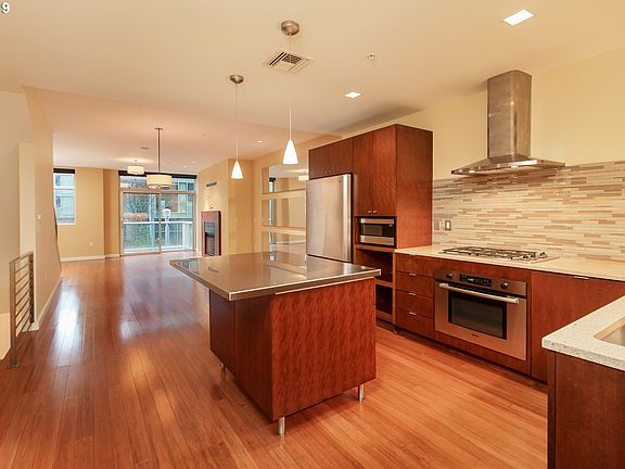 Beautiful Meriwether townhouse with your own private entrance and attached 1+ car garage. Featuring 2 private balconies and a gas fireplace. This rare offering can be used as a live/work space and provides easy access to shops, restaurants, Max, Streetcar, Willamette river and OHSU, all from your own private front door. The Meriwether also offers free guest parking & guest suite. Enjoy all the South Waterfront has to offer!