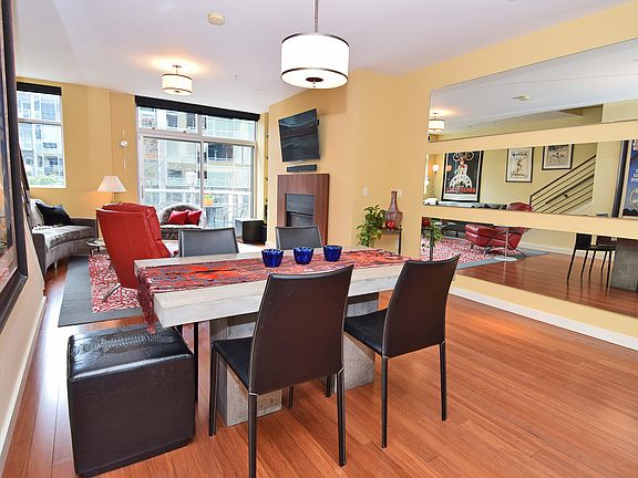 Beautiful Meriwether townhouse with your own private entrance and attached 1+ car garage. Featuring 2 private balconies and a gas fireplace. This rare offering can be used as a live/work space and provides easy access to shops, restaurants, Max, Streetcar, Willamette river and OHSU, all from your own private front door. The Meriwether also offers free guest parking & guest suite. Enjoy all the South Waterfront has to offer!