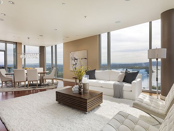 One of a kind Atwater Place Penthouse in the peaceful South Waterfront. Beautiful views of the river, Mt Hood & West Hills from every room. Enjoy outdoor living on the rare 2 large terraces where you can dine, garden, entertain, watch sunrise & sunset. Den, high-end penthouse finishes throughout, high ceilings, fireplace, 2 single parking spaces & large oversized storage unit complete this truly exceptional home.
