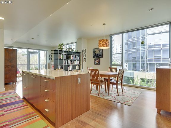 Rare NW corner unit with a sophisticated mix of warm wood tones, luxe tile & walls of windows=timeless appeal. Modern living at it's most convenient! 2 large bedrooms, 2 spacious full baths, 2 parking spots(tandem), TWO storage units, sunny balcony and courtyard view. Enjoy South Waterfront's premier Building, a front row seat to the Tillicum Bridge, Willamette river and all the shops & services you could want! No rental cap