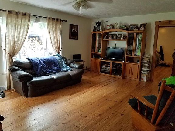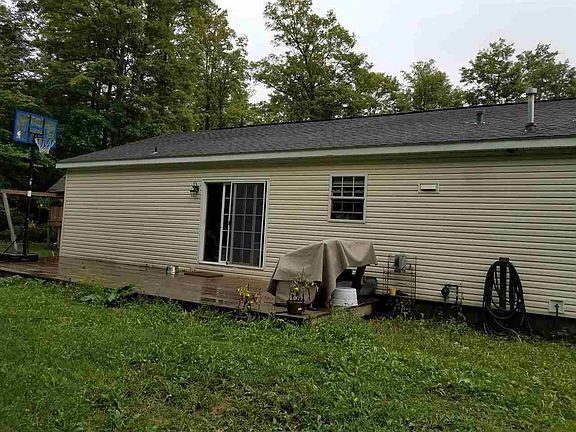 This sweet house tucked away on 20 wooded acres needs a little TLC ~ but not much. Just enough to make it yours. Wood floors and tile make it easy to clean. This is an open concept home where you aren`t hidden in the kitchen while everyone else has a good time in the living room. Plenty of room for a large dining table, too. A 2 year old wood stove helps keep heating costs down beautifully. The master is large at approximately 14 x 13.5 so a king bed plus end tables will fit comfortably. And, it`s also en suite. The other two bedrooms are on the opposite side of the house which allows privacy for the master. A wood deck is on both sides of the house. The house is surrounded by hardwoods ~ so make maple syrup to your heart`s content!! Berry bushes are also abundant. What was once a large high fenced garden can be recaptured and made abundant again. A chicken coop, hidden in the woods, and used as a weight room, can be made into a studio or hide~a~way but you will need to bring in electricity. This hidden gem on twenty acres can be yours!!!!