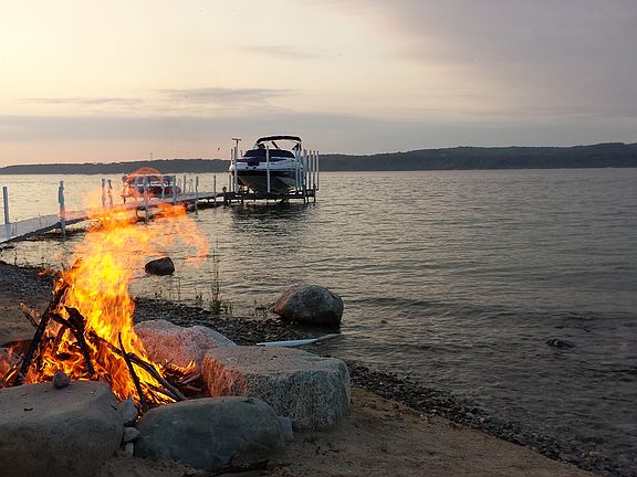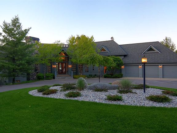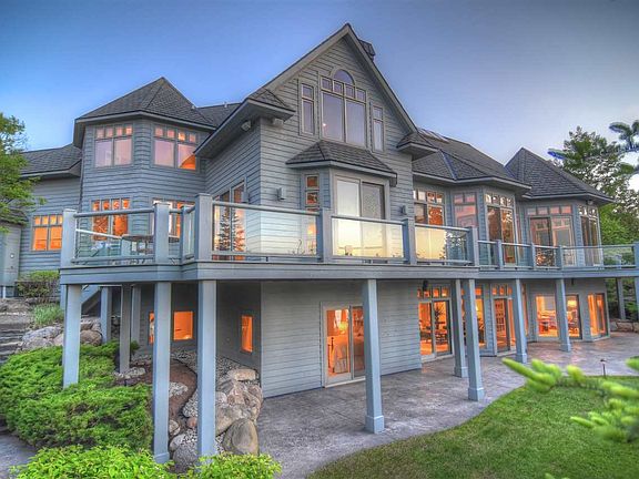 All new door walls and new Trexx deck! Travel down a tree lined private road and you will find one of the finest estates currently offered on Lake Charlevoix. The nearly 6400 square foot residence was designed by award winning architect H. Jack Begrow so the flow and quality is unmatched. The interior finishes were completed by Tim Fisher of Indesign so every comfort of home is perfectly appointed. Two-story entry, vaulted ceilings, large windows, and soaring natural stone fireplaces all draw your attention to Lake Charlevoix and the Northern Michigan Lifestyle. The open living and dining rooms are only divided by a stunning double sided stone fireplace. A large gourmet designed kitchen is capable of preparing the best meals for the largest of families. The main floor master suite is sumptuous and makes for a great retreat. There is a beautiful fireplace for romantic evenings, double walk in closets, and beautiful tub & shower. A lakeside octagonal sitting room is the perfect spot to watch the best sunsets on the lake. The main floor laundry, pantry, and garage are perfectly designed as well. Outdoors is a wrap around expansive deck to listen to the waves, family gatherings, and soaking up the sun. Back inside and up a beautiful open glass stairwell there are 2 oversized bedrooms and bath. The fully finished lower level is a great getaway including a second kitchen, living, 2 bedrooms, office and exercise room. Outside this nearly 9 acre estate and over 200 feet of Lake Charlevoix frontage is masterfully landscaped with lighting, irrigation, and sandy beach area for the kids to build sandcastles and memories. Walk out the Bulmann dock, hop on your boat, and go anywhere in the world or just cruise around beautiful Lake Charlevoix. This estate will accommodate even the largest of families or can be your retreat in the woods. High speed cable internet, central sound, in-floor radiant heat, central air, generator, and a security system complete this incredible package.