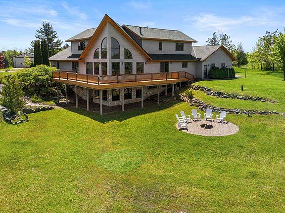 Once you enter this stunning home and experience the breathtaking views of Lake Charlevoix, you won't want to leave! Gaze at the stars for hours with no obstructions or distractions. Located high above it all, you can watch the festival fireworks of Boyne City, Charlevoix, and East Jordan. This 5 bedroom, 5 bath home, on 16 acres, has the square footage for large gatherings and plenty of room to roam. Practice your short game over the pond and past the sand trap, with magnificent fall color views leading to the open water. Store your boats, recreational vehicles, trailers, etc. in the 48' x 32' pole barn with 14' doors. Inside, the in-floor heating will keep your toes warm all winter and the central air conditioning will provide cool relief on a hot summer day... plenty of bedrooms and baths, gas fireplace, three car-heated garage, and all kinds of storage. Between the expansive deck and wet bar in the walkout family room, this home is perfect for entertaining all year-round. Pop down to the Ironton Ferry and across the South Arm for waterfront dining. Northern Michigan is a special place. It's been said that the stress melts away when the Zilwaukee Bridge appears in the rear view mirror. When you find a special property IN a special place, well... Let's discuss the possibilities!