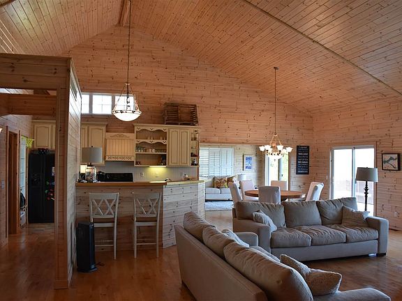 Exceptional four bedroom home offers a 100 feet of waterfront on Lake Charlevoix. The interior boasts over 4,400 square feet and offers a perfect northern Michigan feel with a fieldstone fireplace, open kitchen, dining room and relaxing sun room. The full finished walk~out lower level is great for entertaining guests. Enjoy cobblestone walkways, fire pit and a paved circular drive and private boat dock. Located just a short drive to Boyne City or a Ferry ride over to head to Charlevoix. Measurements believed to be accurate, but not guaranteed, and should be verified by the buyer..