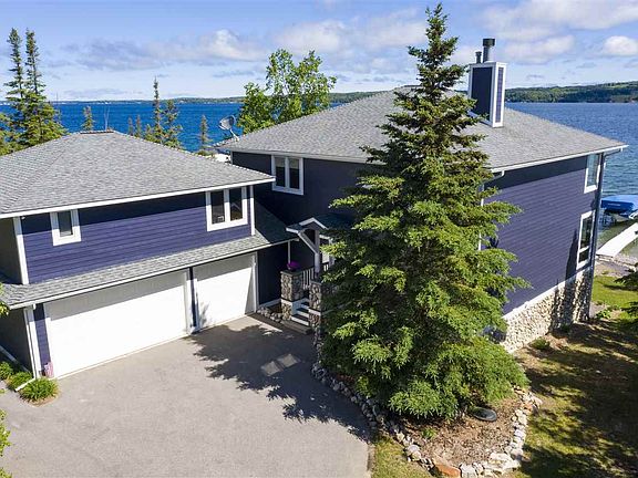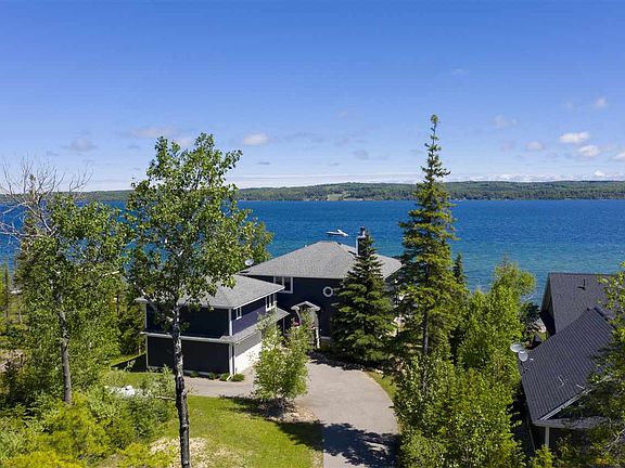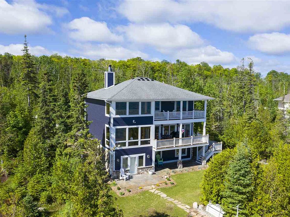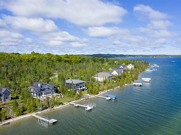 Secluded on a quiet road with 100' of Lake Charlevoix frontage sits a beautiful 6-bedroom home. Incredible sunsets and utmost privacy take this from a normal home to a sanctuary. The spacious floor-plan has ample room for entertaining guests or simply room to spread out. The master suite has a private deck with outstanding sunrise and sunset views. The upper level features 3 bedrooms, 2 baths and an open loft area with wonderful water views. The double-sided stone fireplace separates a living area and a quiet den. Just when you thought you'd seen it all, there's an adorable guest suite above the garage with a private bedroom and living area with its own fireplace. This home screams comfortable yet classy. The Club at Lake Point Association has 21 lots and there are not any homes older than 25 years in the development, many being less than 10 years old. Being in an area of newer homes usually keeps values in check.