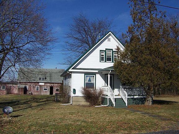 Nice country house on 2 acres with large barn. Land includes fruit trees. Hardwood floors, updated windows, 1 bedroom on first floor and 2 bedrooms up. Enclosed side porch and open front porch. Two story barn with electric plus loft.