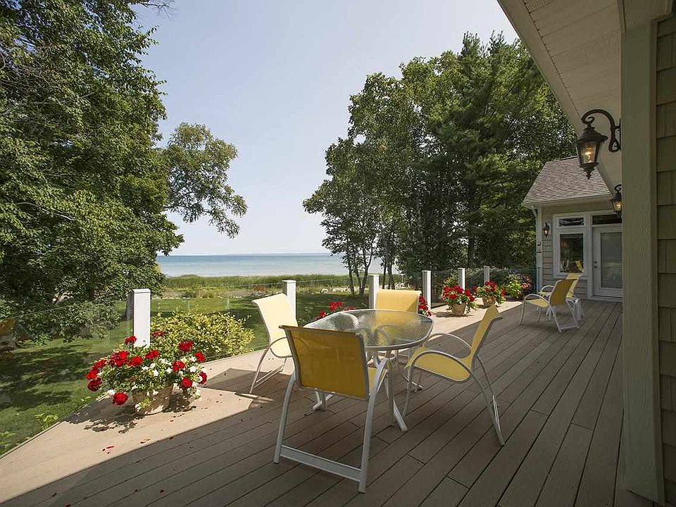 Custom designed walkout ranch with magnificent Lake Michigan views. This elegant waterfront home offers has 3 bedrooms, 3 full baths including a spacious first floor master. The finished walkout lower level can be expanded to add additional bedrooms, or theater/game room, etc. The main level offers Brazilian Cherry flooring, custom kitchen with walk-in pantry, expansive covered and uncovered decking. The home is conveniently located close downtown and near biking trails, Mt. McSauba ski hill, and golfing.