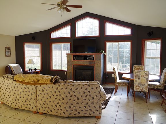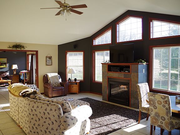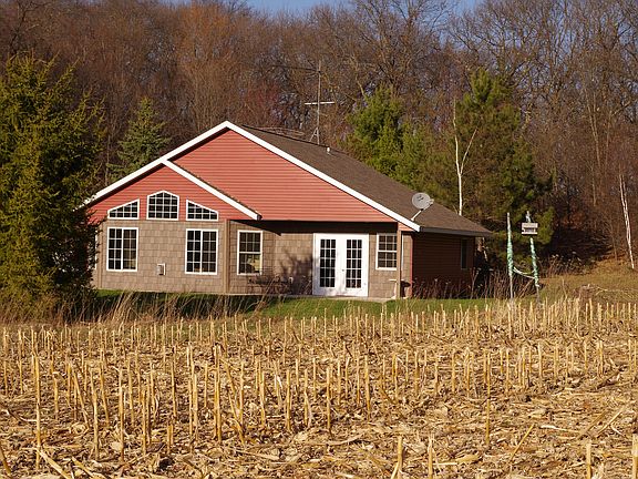Hunting cabin or house with 20 acres built in 2010, in serene private setting, with captivating views! Land is mostly wooded rolling hills with open field valley and prime hunting (deer, turkey, bear). Property is located 10 miles east of I94 off Osseo exit, about 3 miles from Fairchild off HWY 10. Just a short drive to Eau Claire and Black River. Main cabin/house is open concept 2 bedroom, 1 1/2 bath. Has in floor heat with tile floors throughout. Slate gas fireplace in living room, with vaulted ceilings and lots of windows with southern exposure. Wired for surround sound in great room. Solid surface countertops, upgraded cherry cabinets with trim and doors to match. Master suite off large multi purpose bedroom for pool table, bunks, endless possibilities. House was built to have option for future addition. New well and septic. Appliances included. 2 car detached garage and older "A" frame hunting cabin on property.
