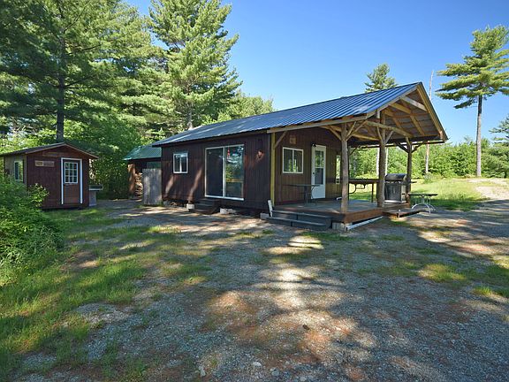 Maine Lakefront Cabin for Sale in Burlington Blueberry Pines on Madagascal Lake is a 93 +/- lakefront treasure with 4,600 +/- feet lake frontage. It is rare to find a lakefront property with this much land, frontage and privacy in this price range. The land is a diverse mixture of rolling hardwood and softwood timber, sand and gravel deposits, forested and open wetlands all of which combine to create a habitat for all of Maine wildlife. Moose and deer sightings are frequent along with turtles, eagles, waterfowl and upland game birds. No commercial timber harvesting has been done on this property for 20 years. The remote off grid site has only a few neighbors. The cabin is located on a lakefront point laden with white pine and wild blueberries that are the inspiration for the name of this offering. From the cabin there is a secret trail that meanders through the pine and berries to a protected sand bottom cove. This cove is perfect for swimming. The property lends itself well for dividing additional waterfront lots for resale or additional building sites for kids and grandchildren. The cabin is a rustic but comfortable one room abode with a roof covered porch. Sit and relax in the quiet location taking in the views and summer breezes while enjoying a cold beverage and BBQ. Along with the cabin the property has a bunkhouse that could sleep four or more and a storage building for your toys, canoes and tools. A gravity fed shower to clean up after a long hike in the woods or an ATV ride is mounted to the back of the cabin. These improvements are fine for those who don't need a lot of modern conveniences, but there is plenty of room to build a more modern home or cottage and utilize the current cabin and outbuildings for guests. Madagascal Pond is a 750 +/- acre lake with depths up to 35 feet. The fishery is primarily smallmouth bass with some wild brook trout present. The outlet known as Madagascal Stream is a wild brook trout fishery that eventually feeds into the Passadumkeag River, a tributary of the Penobscot River. For shopping and other conveniences the town of Lincoln is the nearest location and is about a 30 minute drive from the property.