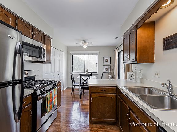 Location-Location-Location!!! You can stop looking now! Desirable 2 bedroom 2nd floor unit in the sought after Highlake Subdivision. Conveniently located near train, walking/biking/running trails, lake and Hospital, this is where you want to be! Featuring a spacious living room with vaulted ceilings and fireplace, 2 large bedrooms, 2 full baths and full size in unit laundry. Enjoy storage galore in the multiple closets. No yard work to cut into your leisure time on your private deck. The entire condo is clean as a whistle. Enjoy the convenience of your attached garage with entry to building. You also have driveway parking as well as guest parking.