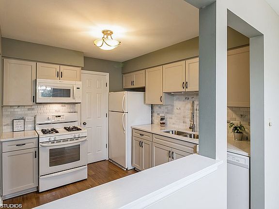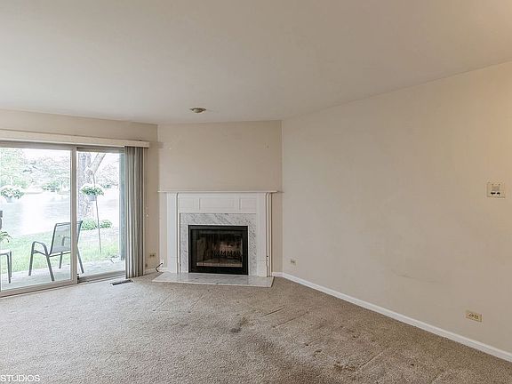 Cutest condo ever with a lake in your backyard! Charming 2 bedroom, 1 bath first-floor ranch condo in the High Lake condominium subdivision. The updated centrally located kitchen has its own pantry and cozy breakfast area. You'll love the quartz countertops, tiled backsplash, 2-tone cabinets and soft-close drawers and cabinet doors. The open-concept, L-shaped living room and dining area boasts a gas fireplace and provides a view of the patio and lake with double sliding glass doors. One bedroom features a large walk-in closet; the second bedroom has mirrored closet doors. The updated hall bath serves both bedrooms and guests. The attached garage is located so that you can step out of your car, open the private locking door, and enter the hall and common area, staying safe and dry. Very well-maintained community with a lake, walking trails, beach and picnic area. Great location, very close to downtown Winfield shopping and restaurants; walking distance to Central DuPage Hospital. Estate Sale; being sold "as-is".