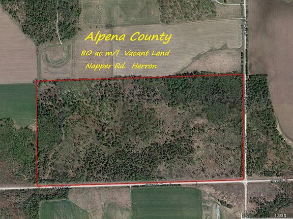 Alpena County 80 ac m/l Vacant Land! Fantastic diverse hunting property located less then 10 miles from Alpena and Lake Huron! Fully wooded with a great mix of high and low ground and surrounded by neighboring farmland. Being a corner parcel there is good access from the South and the East along with a short trail from the SW corner that leads up into the property. There is great sign of deer, turkey and partridge with a ton of potential to make more improvements to the land. Dial the listing agent directly for more information. The ''contact agent'' feature will not get you there **Maps contained on our sites are there to simply depict the over all layout or shape of a given property and show what it looks like from an aerial view. These maps are neither a legally recorded map, or any type of a legal survey and should never be used as such. Also "Acreage" amounts are displayed as according to the information we have obtained through local government and are in no way guaranteed or warranted to be exact*