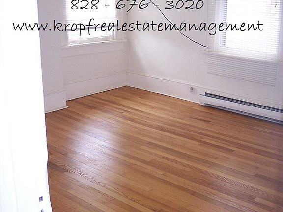 North Asheville 1 bedroom, 1 bath upstairs apartment in duplex. Freshly painted, hardwood floors, living room, eat-in kitchen with stove and fridge and shared basement. Includes water, trash, recycling and yard maintenance. Will consider a pet.Kropf Real Estate Management Co. Inc. Application, lease and deposit. $1300 per month. One month security deposit based on a clean credit report, background and reference check.