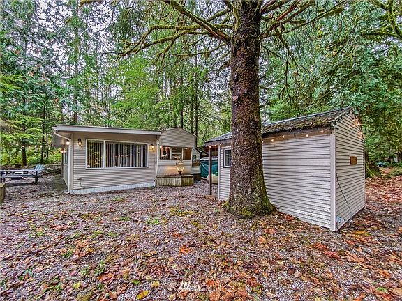 Furnished 1977 trailer w/ attached roof, covered entry & large heated addition. Storage shed w/ power. Private vibe w/ ample space for parking/recreating. BBQ, picnic table & fire pit included, just bring marshmallows! Cable TV, internet. Near Silver Lake & Mt. Baker Snoqualmie Forest for year-round fun. Open 365 days/year but limited to 120 days of occupancy. Includes pools, hot tub, ball courts, library, laundry, security/gated entry, pump track, playgrounds, disc golf, river access & more.