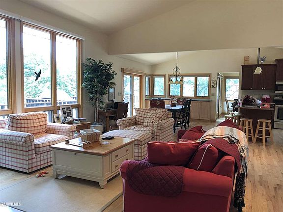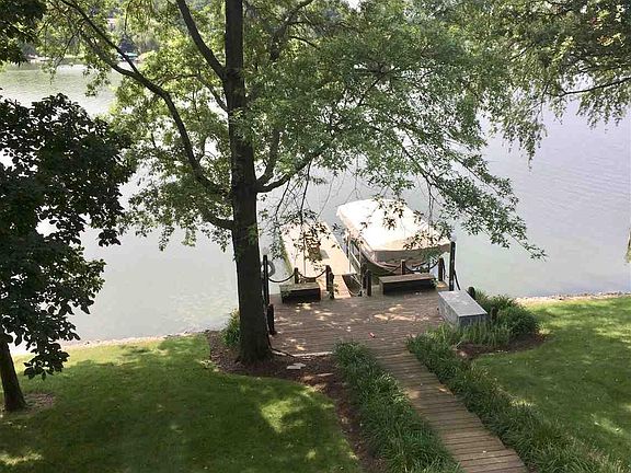 Exquisite LAKEFRONT property. Beautifully landscaped lakefront lot with immaculate home in wonderful condition. Has TWO, 2 car garages. Lovely 178' shoreline, shaded wood deck by the dock and GREAT water depth perfect for swimming off the dock end. This Custom built home has oak hardwood floors, maple 6 panel solid doors throughout, carpeted bedrooms, tile flooring in bathrooms and laundry. Enter the foyer to the Great Room with Cathedral ceilings, wood burning fireplace and wall of windows to the Lake. The dining area offers room to extend table for a large gathering and a direct patio door to the back deck. A comfortable breakfast bar island with pendant lighting defines the open kitchen area. Traditional design hardwood maple cabinetry have been stained a warm cherry finish contrasting beautifully with the new SS appliances. The 4 Season room off the kitchen offers additional privacy for office work, TV, reading and relaxing. This room is a family favorite with a direct door to the upper deck as well as a side entry door to the walkway and garage . The Main floor master bedroom suite has a deluxe bathroom with walk-in shower. The fully finished LL has a family room with wood burning fireplace, full view windows and walk out to the deck and walkway to the delightful waterfront. There are two separate LL Bedrooms plus a full bath. The laundry area has a deep sink plus many cabinets for seasonal storage. A 2011 extension project included a finished area off the Laundry for "mud room" or wet Lake toys and towels to dry plus organizing beach equipment and seasonal snow stuff. There is a direct doorway to the lower deck leading to steps to the finished waterfront and dock. Spacious, comfortable, beautiful materials, two garages for storage of vehicles and ATVs. Located on a deep water no wake bay just off the main channel...... come see this wonderful waterfront property today ! Home is being sold with furniture, many extra items and negotiable waterfront dock. ***An incredible opportunity to extend your wooded privacy and water front with the vacant lakefront lot next door for an additional $175,000. Call Listing Agent for details and MLS number.