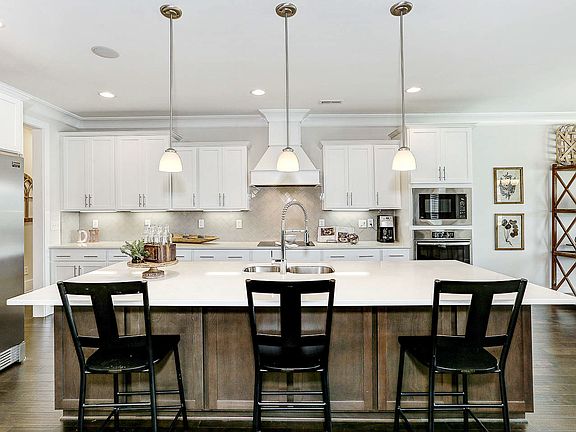 Welcome to The Finleigh! Embrace luxury with this one-story home's next-level features, including a three-car garage, elegant dining room and open-concept family room. Inside, the designer kitchen welcomes your guests with an oversized island. Enter the Master Suite and fall in love with the gorgeous tray ceiling and Master Bath. Featuring vaulted ceilings, a large dual vanity and a six-foot garden tub, this glamour bathroom has it all. Elsewhere, the home office and covered porch offer a getaway from the hustle and bustle, while the massive pantry ensures you'll always have room for more groceries! Make it your own with The Finleigh's flexible floor plan, featuring options for a bonus room, fireplace and more. Just know that offerings vary by location, so please discuss our standard features and upgrade options with your community's agent. *Attached photos may include upgrades and non-standard features.