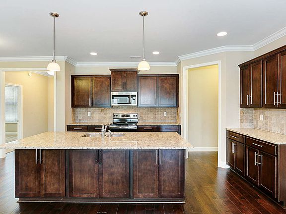Within The Lanier's charming, full-brick exterior lies four bedrooms and plenty of space. The three-car garage leads into the home's mud room. The kitchen features a large pantry, double-sided island and more than enough counter space. Once there you'll discover the home's biggest feature - the huge, open-concept layout. The combined family room/kitchen/dining room are perfect for entertaining, and the plan's Master Suite is to-die-for. Read your favorite novel in the Master Bedroom's gorgeous sitting area or discover the Master Bath's split sinks and large walk-in closet. The fourth bedroom can also serve as a home office, and the covered porch offers a quiet escape to the outdoors. Make it your own with The Lanier's flexible floor plan, featuring an optional covered porch, a fireplace and more! Just know that offerings vary by location, so please discuss our standard features and upgrade options with your community's agent. *Attached photos may include upgrades and non-standard features.