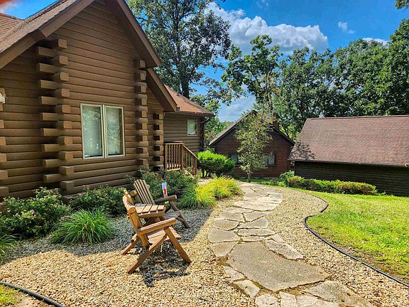 Discover the perfect blend of timeless appeal and modern comforts in this stunning log home at Lake Carroll. Nestled on a beautifully wooded half-acre lot near the East Marina, this 3 bedroom, 3 bathroom retreat offers a serene setting with plenty of space for relaxation and entertainment. Step inside to find a warm and inviting living room featuring gorgeous vaulted wood ceilings and beautiful stone fireplace that enhance the home’s natural charm. The living room is open to the dining room and kitchen allowing for family and friends to enjoy together. A warm and cozy 4 seasons room is right off this area and also has access to the large deck. The loft area is currently being used as a bedroom, but would be ideal for an office or craft room or whatever your need might be. The finished lower level is a true highlight, boasting a spacious family room with built-in bar with granite top and fridge - perfect for hosting gatherings. Enjoy seamless indoor-outdoor living with a walk-out to the lower patio where you can enjoy the peace, quiet and privacy as it is surrounded by trees. A 3rd bedroom with attached bath and versatile flex space with fireplace and walkout to another patio with wonderful views of the back yard complete this level. Additional features include a circular drive leading to a huge 3 stall garage, ensuring ample parking and easy access. With its close proximity to the clubhouse and golf course, as well as its convenient location near Lake Carroll’s East Marina, this home offers the ultimate in leisure and convenience. Don’t miss the chance to own this exceptional log home in a great location. Schedule your viewing today! Most furnishings stay (minus some personal items) Updates include: disposal 2024; roof, gutters and skylights in 2020; home re-stained in 2021; 2020 refrigerator; a/c, furnace, water softener, iron out system, and water heater 2018.