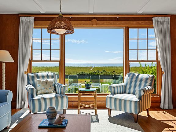 exceptional privacy, framed by mature gardens in front and a sweeping lawn leading to the seawall and dunes. With ample parking, it's designed for gatherings large and small. Cherished by only two families since 1954, it has hosted decades of memories and even family weddings. Whether renovating, updating, or envisioning an entirely new